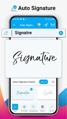 ✒ Auto Signature is the best feature of this Digital Signature Maker and Create Signature Application. You can create your Name Signature just by entering your name in the textbox. This app has many signature styles. For the E-Signature, you have to select the font style according to your requirements.