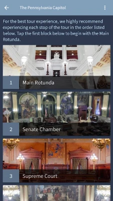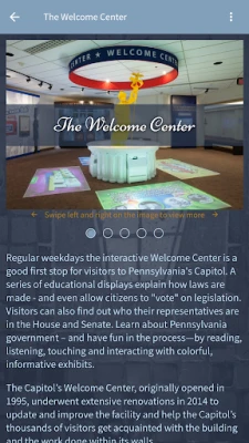 With this app you can: • Learn about each of the self-guided tour stops including the Rotunda, House Chamber, Senate Chamber and the Supreme Court • Visit the interactive Welcome Center • Learn how a bill becomes law in Pennsylvania • Explore other educational material and activities