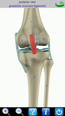 The user can zoom in to any area by using pinch zoom. The feature point (cross) can be selected by tapping on it. Detail button allows you to switch on/off the short description. For muscle section, detail button only show the description. Pressing the rotation button to allow you to change the view.
